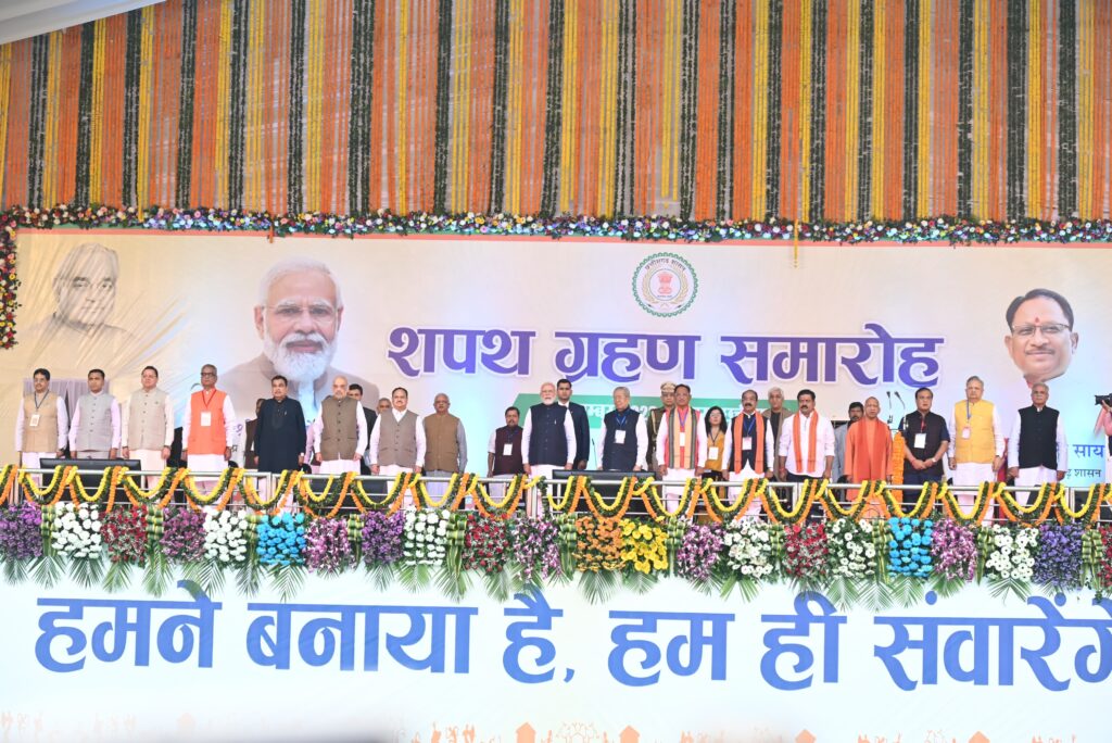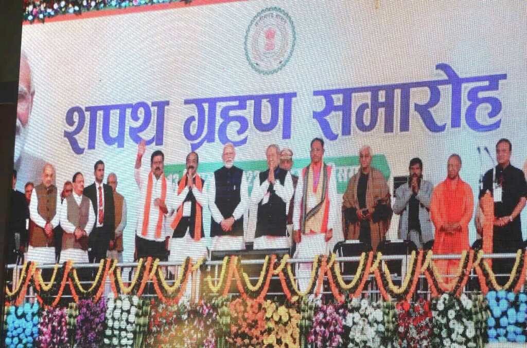 प्रधानमंत्री श्री नरेन्द्र मोदी की गरिमामय उपस्थिति में श्री विष्णु देव साय ने ली छत्तीसगढ़ के मुख्यमंत्री के पद एवं गोपनीयता की शपथ