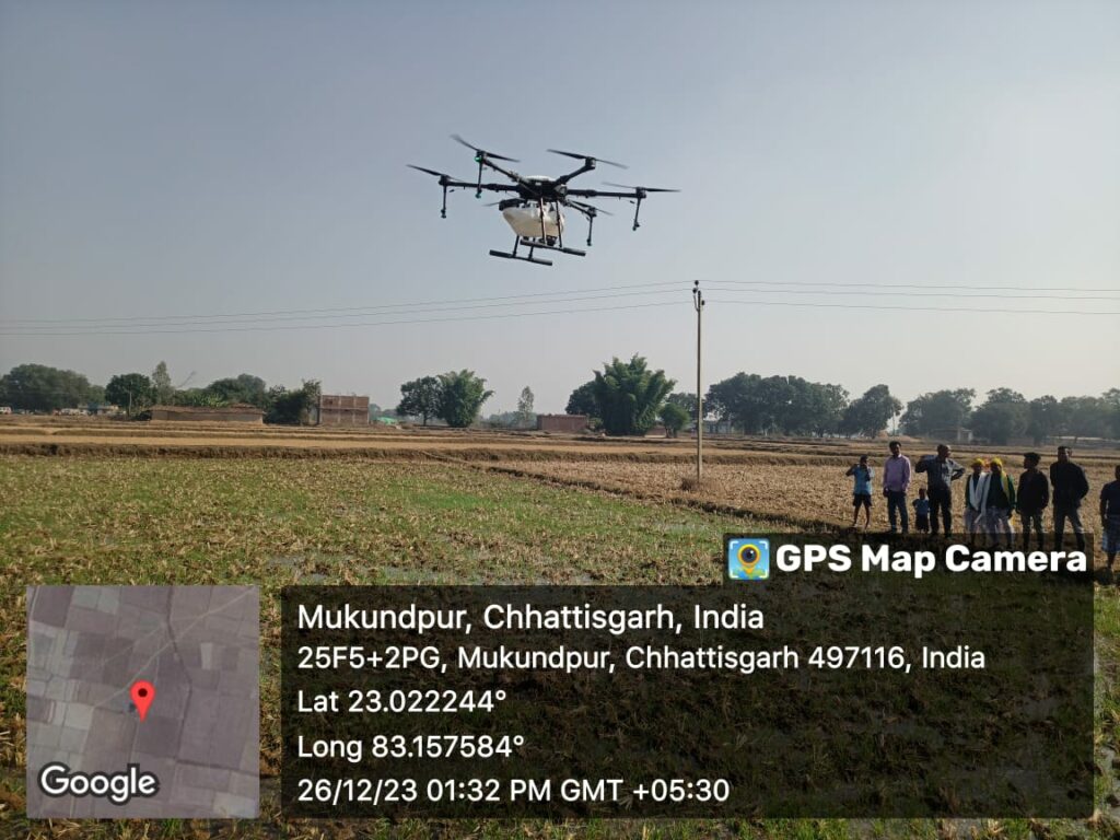 विकसित भारत संकल्प यात्रा के दौरान खेती में बढ़ते लागत, मजदूरों  की कमी को देखते हुए खेती-किसानी को आधुनिक बनाने के उद्देश्य से कृषि विज्ञान केंद्र, कृषि विभाग एवं नेशनल फर्टिलाइजर लिमिटेड के संयुक्त तत्वधान में विभिन्न ग्रामों में शिविर के माध्यम से ड्रोन तकनीक द्वारा नैनो यूरिया छिड़काव का प्रदर्शन किया जा रहा है। जिसके माध्यम से शिविर में उपस्थित किसानों को छत्तीसगढ़ के प्रमुख फसलों में नैनो उर्वरक के उपयोग के संबंध में जानकारी दी जा रही है। इस दौरान नैनो उर्वरको का फसल पर सही एवं लक्षित प्रयोग करने से पर्यावरण को बिना नुकसान पहुंचाए कैसे पौधे को आवश्यक पोषण दिया जा सकता है और अच्छी उपज प्राप्त की जा सकती है के सम्बंध में बताया जा रहा है। इस दौरान बताया गया कि विस्तृत यह योजना आगामी समय में कृषि व महिलाओं के सशक्तिकरण के क्षेत्र में अपनी अहम भूमिका निभाएगा। ड्रोन के माध्यम से उन्नत कृषि व आधुनिकीकरण को बढ़ावा दिया जाएगा तथा ड्रोन के संचालन से महिलाएं स्वयं को आर्थिक रूप से सशक्त करेंगी।