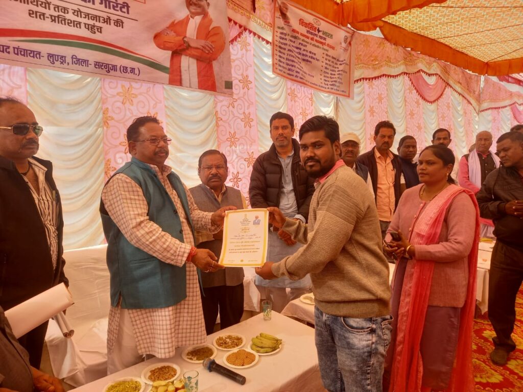 अम्बिकापुर shaif firdousi 28 दिसम्बर 2023 भारत सरकार की योजनाओं को जन-जन तक पहुंचाने के उद्देश्य से विकसित भारत संकल्प यात्रा के अंतर्गत जिले के सभी ग्राम पंचायतों में कार्यक्रम आयोजित किया जा रहा है।