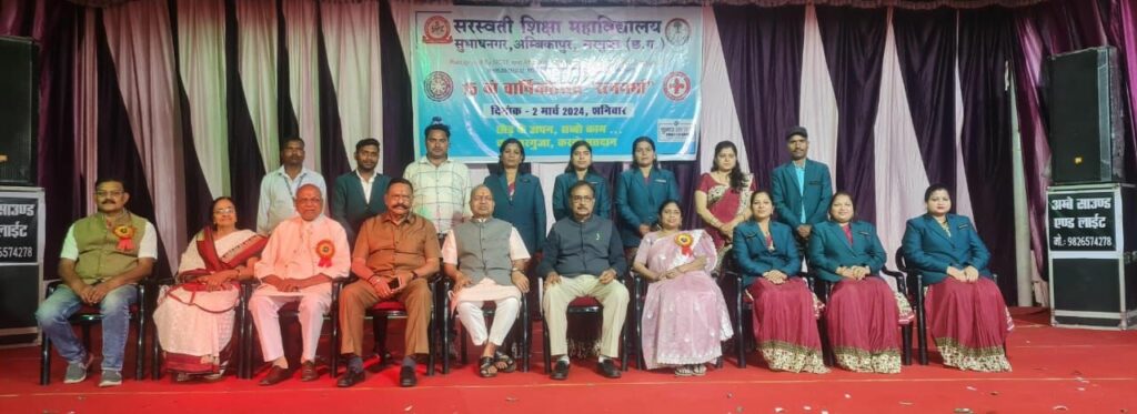 सरस्वती शिक्षा महाविद्यालय द्वारा आयोजित 15 वें वार्षिकोत्सव कार्यक्रम में कलेक्टर एवं जिला निर्वाचन अधिकारी समेत सरस्वती शिक्षा महाविद्यालय समिति के माननीय सदस्यों का भी मार्गदर्शन प्राप्त हुआ। स्वीप नोडल एवं मुख्य कार्यपालन अधिकारी जिला पंचायत सरगुजा श्री नूतन कुमार कंवर के मुख्य आतिथ्य, अपर कलेक्टर श्री सुनील नायक के विशिष्ट आतिथ्य, एसडीएम श्री फागेश सिन्हा, अध्यक्ष श्री सुभाष चंद्र अग्रवाल, उपाध्यक्ष श्री अनिल सिंह मेजर, व्यवस्थापक श्री बसंत कुमार गुप्ता, सह व्यवस्थापक श्रीमती प्रतिभा त्रिपाठी, सह व्यवस्थापक श्रीमती प्रतिमा त्रिपाठी, कोषाध्यक्ष श्री राजरूप छाजड, श्री कर्ता राम गुप्ता जी के विशेष उपस्थिति में विविध गतिविधियां आयोजित की गई। संस्था की प्राचार्य डॉक्टर श्रद्धा मिश्रा व नोडल प्राध्यापक श्रीमती रानी रजक के नेतृत्व में विविध रोचक गीत संगीत एवं नृत्य प्रस्तुत किया गया । कार्यक्रम की अध्यक्षता श्री सुभाष जी अग्रवाल ने किया। इस अवसर पर उप जिला निर्वाचन अधिकारी, अतिरिक्त पुलिस अधीक्षक श्री पुपलेश कुमार ने अपने उद्बोधन में शत प्रतिशत मतदान करने की अपील की। साथ ही महाविद्यालय द्वारा आयोजित कार्यक्रम की सराहना भी किया। कार्यक्रम में प्रतिवेदन श्री बसंत कुमार गुप्ता, व्यवस्थापक सरस्वती शिक्षा महाविद्यालय ने प्रस्तुत किया। साथ ही समिति के अध्यक्ष श्री सुभाष अग्रवाल जी ने बताया कि मानव सभ्यता के संदर्भ में अध्यापन-कार्य न केवल दूसरे व्यवसायों की तुलना में सदैव विशेष महत्व का रहा है बल्कि अन्य सभी व्यवसायों का आधार भी है । आज सामाजिक परिवर्तन विशेषतः प्रौदयोगिकी की तीव्र उपस्थिति ने शिक्षक और शिक्षार्थी के रिश्तों को नए सिरे से परिभाषित कर रहा है। साथ ही महाविद्यालय की प्राचार्या डॉक्टर श्रद्धा मिश्रा ने आए समस्त अतिथियों, अभिभावकों, प्रशिक्षणार्थियों, प्रशासनिक अधिकारियों और समिति समेत सभी गुरुजनों को आभार प्रकट किया। साथ ही वार्षिकोत्सव कार्यक्रम सांस्कृतिक विरासत को संरक्षित करने में महत्वपूर्ण भूमिका निभाते हैं, जिससे पीढ़ियों को उनकी अनूठी परंपराओं और रीति-रिवाजों को अनुभव करने, समझने और महत्व देने की अनुमति मिलती है। इस अवसर पर सरस्वती महाविद्यालय के प्राचार्य श्री बी.पी. तिवारी, संस्था के वर्किंग कमेटी के सभी सम्माननीय पदाधिकारी तथा सदस्य गण, स्वीप के सहायक नोडल अधिकारी श्री गिरीश गुप्ता ,जन शिक्षण संस्थान के निदेशक एम सिद्धकी, अशोक सिंह, इंदु मिश्रा,रजनीश मिश्रा, प्रीति तिवारी, महाविद्यालय के कैंपस सभी शिक्षक एवं शिक्षिका, बीएड प्रथम एवं द्वितीय वर्ष प्रशिक्षणार्थियों समेत उर्मिला यादव प्रियलता जायसवाल, मिथिलेश ग