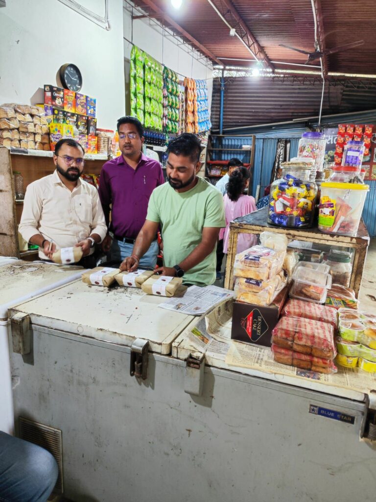 इसी क्रम में कलेक्टर श्री विलास भोस्कर के मार्गदर्शन में और खाद्य एवं औषधि प्रशासन नियंत्रक के निर्देशानुसार जिला सरगुजा के समस्त मिठाई दुकानों का सतत एवं सघन निरीक्षण किया जा रहा है। मिलावट की आशंका के मद्देनजर वरिष्ठ खाद्य सुरक्षा अधिकारी श्री आर.आर. देवांगन एवं खाद्य सुरक्षा अधिकारी श्री प्रशान्त कुमार तिवारी तथा टीम द्वारा घड़ी चौक के पास स्थित मेसर्स पंचशील स्वीट्स एवं रिंग रोड के पास स्थित मेसर्स दो भाई मिठाई वाले से रसगुल्ला, मेसर्स शिवम स्वीट्स से बेसन लड्डू, मेसर्स कार्तिक होटल से बालू शाही, अंकूर फ्लोर मिल से आटा, मेसर्स संतोष होटल से बेसन लड्डू, मेसर्स रॉय स्वीट्स से पेड़ा का नमूना लेकर परीक्षण एवं विश्लेषण हेतु राज्य खाद्य परीक्षण प्रयोगशाला कालीबाडी रायपुर भेजा गया है।