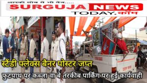 AMBIKAPUR -स्टैंडी फ्लैस बैनर पोस्टर जप्त फुटपाथ पर कब्जा वा असंवैधानिक पार्किंग पर हुई कार्यवाही October 7, 2024