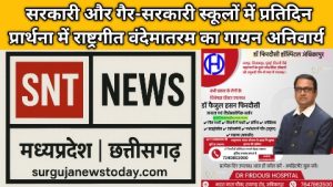 Surguja समस्त शासकीय एवं अशासकीय विद्यालयों में वर्षभर राष्ट्रगीत “वंदेमातरम“ का होगा गायन, कलेक्टर ने जारी किए निर्देश November 8, 2025