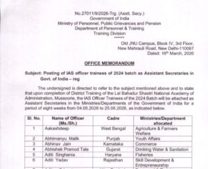 Posting of IAS officer trainees of 2024 batch as Assistant Secretaries in Govt of India March 24, 2026