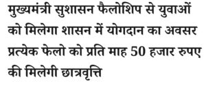 मुख्यमंत्री सुशासन फैलोशिप से युवाओं को मिलेगा शासन में योगदान का अवसर प्रत्येक फेलो को प्रति माह 50 हजार रुपए की मिलेगी छात्रवृत्ति March 26, 2026
