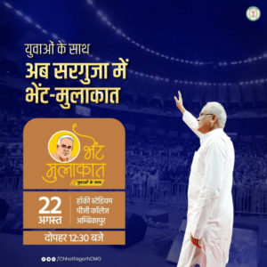 रायपुर : युवाओं के साथ भेंट-मुलाकात : अंबिकापुर को मिली इंडोर स्टेडियम और डिजिटल लाइब्रेरी की सौगात August 22, 2023