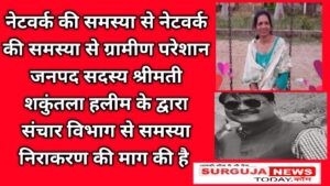 नेटवर्क की समस्या से ग्रामीण परेशान जनपद सदस्य श्रीमती शकुंतला हलीम के द्वारा संचार विभाग से समस्या निराकरण की माग की है October 1, 2024