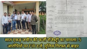 सात एकड़ ज़मीन की फ़र्जी रजिस्ट्री के मामले में पटवारी सहित पाँच के ख़िलाफ़ Fir दर्ज पाँचो आरोपी पुलिस की पकड़ से बाहर। June 26, 2025
