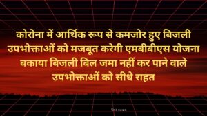 कोरोना में आर्थिक रूप से कमजोर हुए बिजली उपभोक्ताओं को मजबूत करेगी एमबीबीएस योजना बकाया बिजली बिल जमा नहीं कर पाने वाले उपभोक्ताओं को सीधे राहत । March 14, 2026